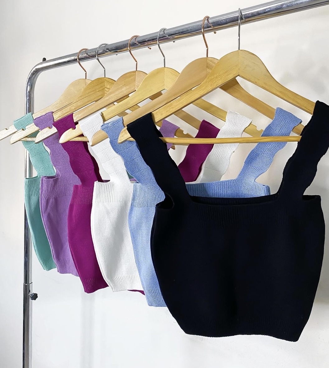 O cropped Baby é feito na malha canelada que modela no corpo, possui elástico na parte de cima posterior, decote reto e alças grossas.